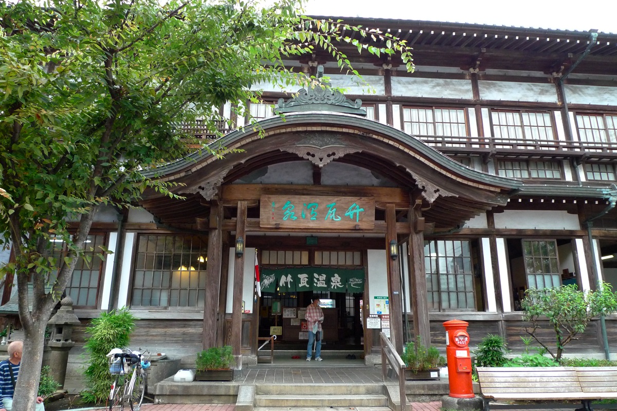 九州の温泉では別府も有名で、源泉数、湯量が豊富です。 別府は学生の時に“アルゲリッチ音楽祭”で何度も来たので 今回は観光はせず一時間ほど滞在し、竹瓦温泉という立寄湯へ。 なんと100円で入れるのです!駅から10分ほど。歴史的建物。たまらん! 町中には手湯というものが幾つか見つけることができます。