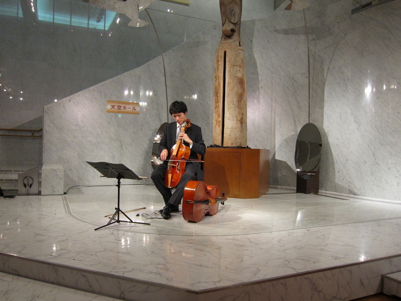 浜松の楽器はそれに近い大きさで、でもいつものチェロと同じ、縦にして弾きました。