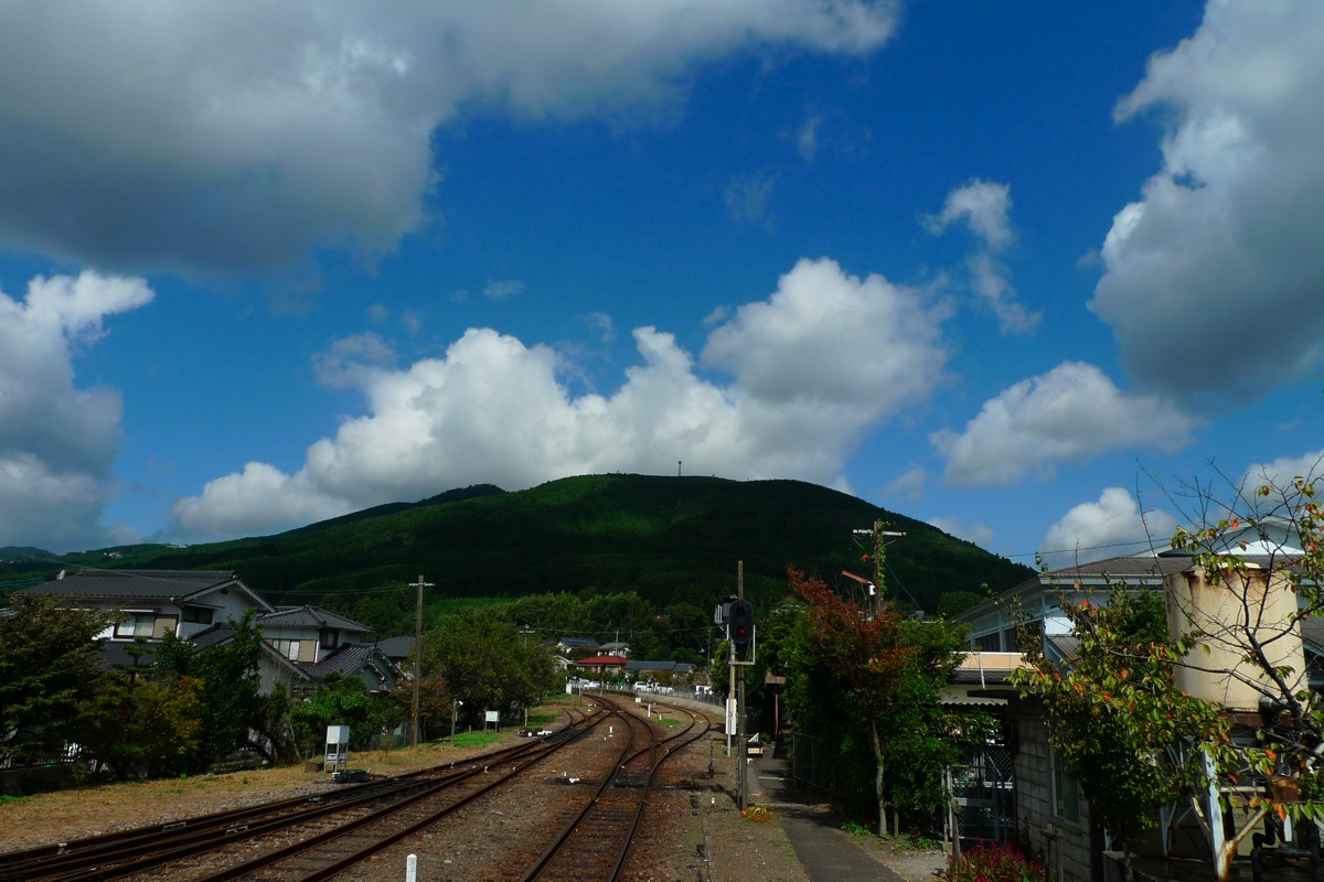 由布とその周辺の観光。 一枚目は由布院駅から日田方面をのぞむ