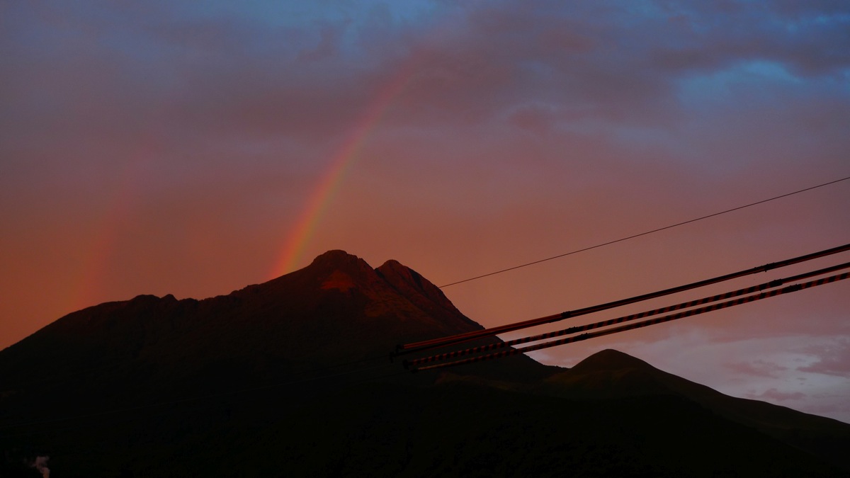 五枚目は由布岳にかかる虹。 よく見ると2本かかってます。電線が惜しい!