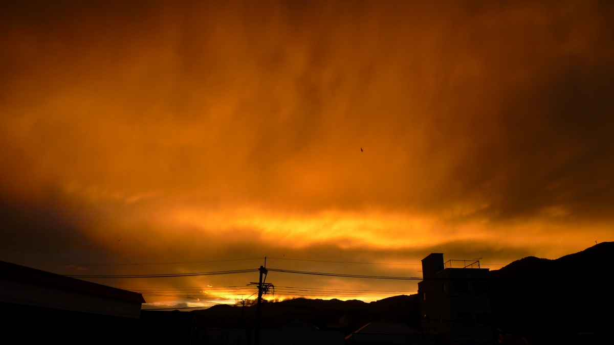 六枚目はそのときの反対側の夕焼け。 カメラだからこの色なのではなく、 実際この色でした。衝撃。燃えるような夕焼け!! PR |