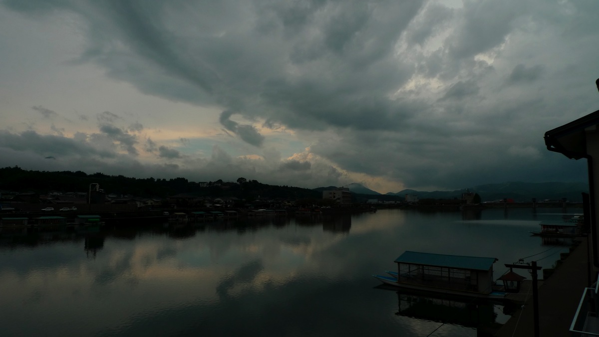 四枚目は日田温泉街から三隅川をのぞむ 水面に映る景色が美しい!
