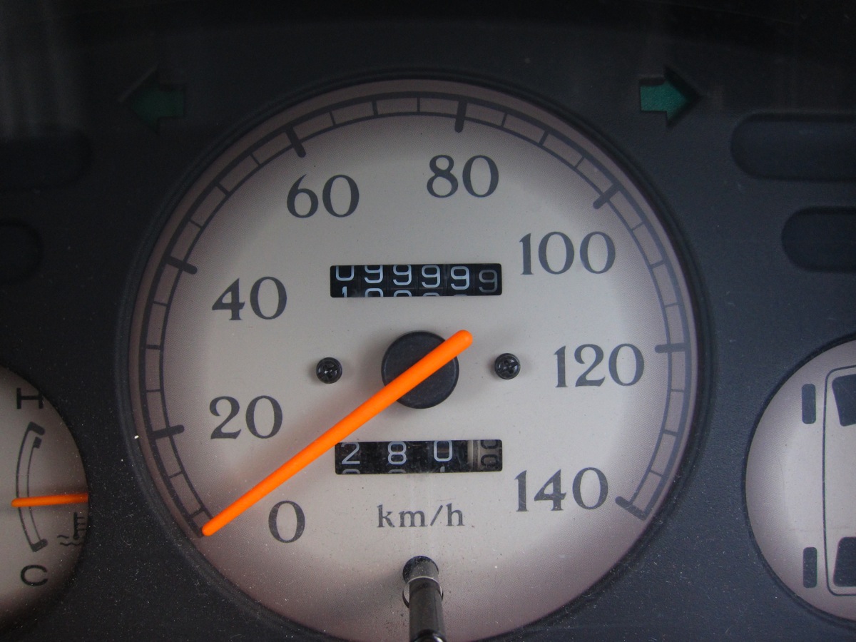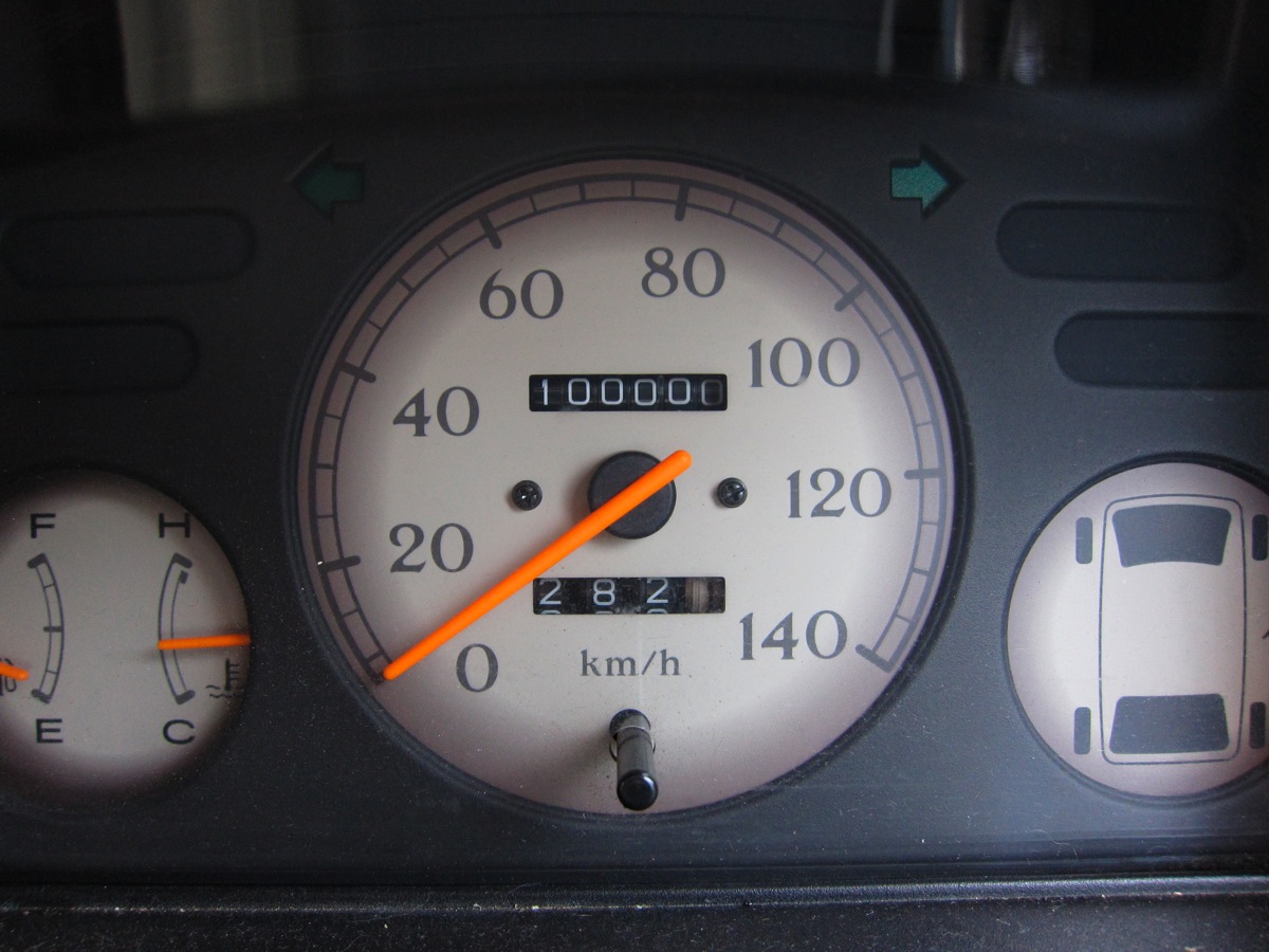 愛車(スバル製サンバー・クラシック) の走行距離が 10万キロ突破しました。 確か83000㎞で買ったので、僕とは17000㎞くらい走ったことに。 200000㎞までは乗りたいな。軽自動車でそこまで持つかな。 これからも宜しくね、サンバーちゃん。
