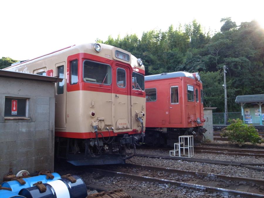 大多喜駅の旧国鉄車両 旅館から眺める亀山湖