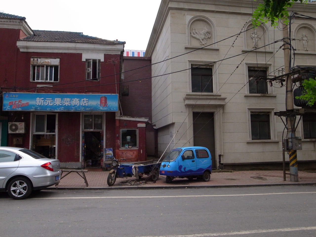 巨大な建物の裏は、昔の建物、平屋などが混在する。
