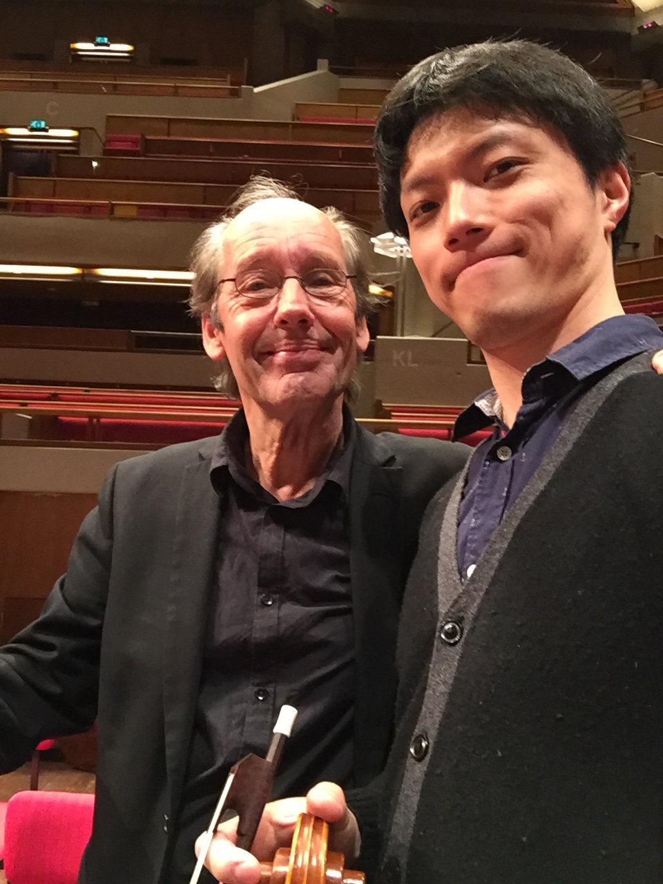 18世紀オーケストラとはフランス・ブリュッヘン氏創設、オランダのオーケストラです。彼は何度か僕の勤めていた頃の新日本フィルハーモニー交響楽団に指揮を振りに来ました。彼の最後の来日も昨日のように覚えています。その楽団でずっとトップを務められてこられました、リヒテ・ファン・デア・メール氏、またA・ビルスマと一緒に演奏を重ねてきた、僕の先生(ルシア・スヴァルツ)の先生、リデゥウィ・シャイフェス氏にもお会いすることができました。念願でしたYO~